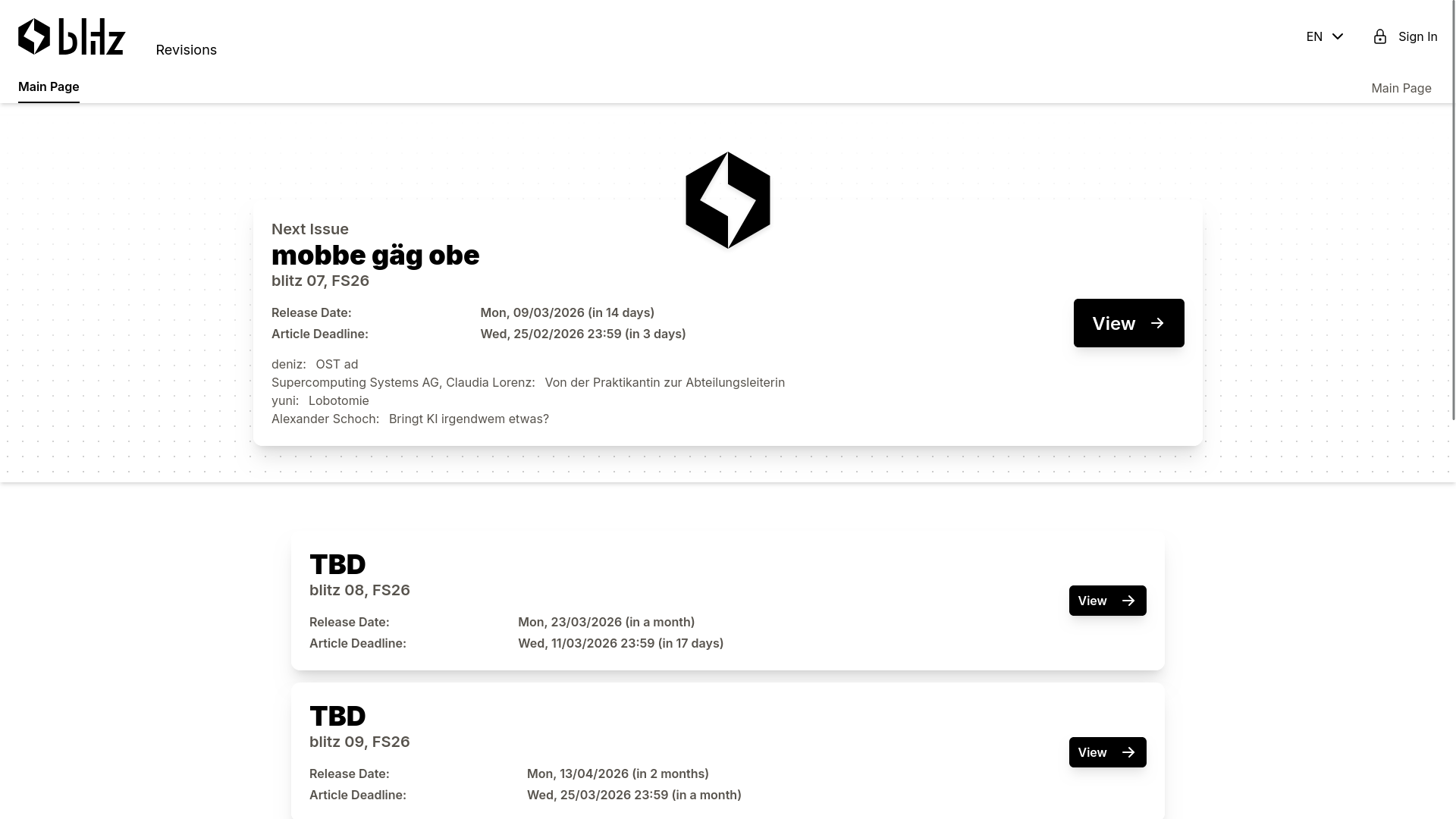 Blitz is the student magazine of AMIV. This magazine is well-known for its by-weekly release schedule and its critical and funny nature.